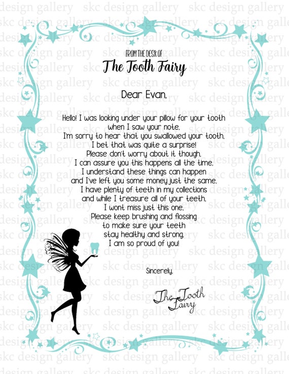 Tooth Fairy Letter Child Swallowed Tooth Letter From Tooth Etsy Australia